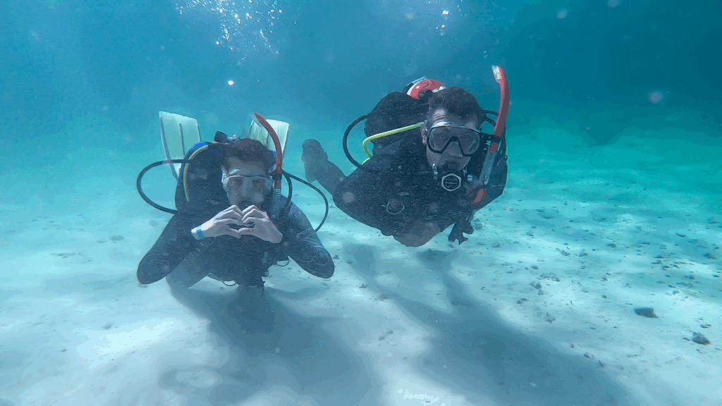 Reizen vinden we fantastisch — maar eerlijk is eerlijk: boven water zijn we vooral aan het wachten op de volgende duik.