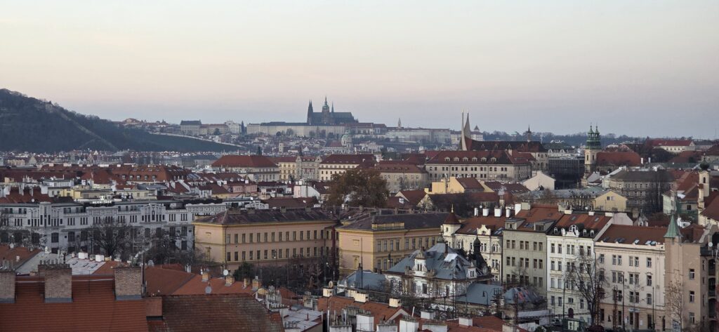 Na aankomst checkten we in bij het hotel. Hoog, met uitzicht over de stad. Vriendelijk ontvangen, en op de kamer stond een fles wijn klaar. Even landen, niets hoeven. Later op de avond zochten we een restaurant in het centrum en maakten we een eerste wandeling door de stad. Praag voelt anders dan thuis: meer sfeer, meer geschiedenis, en gemaakt om doorheen te lopen.