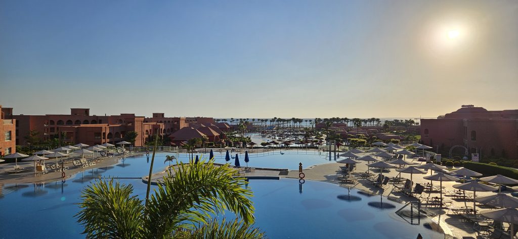 We verbleven in een groot resort in Nabq Bay, net buiten Sharm. Goed onderhouden en met prima bungalows, maar verder totaal niet ons soort plek. All-inclusive, massaal en vrijwel uitsluitend Russisch publiek. Gelukkig waren we met onze eigen groep, en dat maakte het verschil.